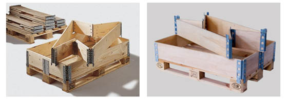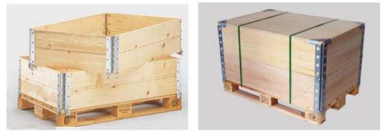 围板箱一般包括托盘、箱体(围板,可根据需要选择数量)、箱盖三个组成部分,可根据产品高度需要,通过调整围板类型和数量来调节箱体高度。